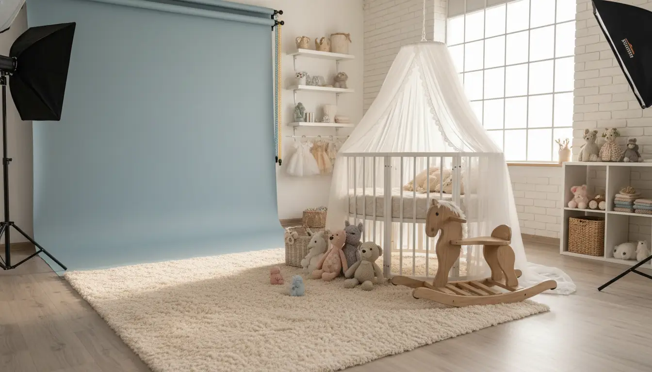 محیط آتلیه باید گرم، دوستانه، بهداشتی و ایمن باشد. دمای مناسب برای نوزادان، وجود فضای تعویض پوشک، شیردهی و استراحت برای والدین از جمله امکانات ضروری است. همچنین، تنوع دکورها، لباس‌ها و اکسسوری‌ها می‌تواند به خلق تصاویری منحصر به فرد کمک کند.