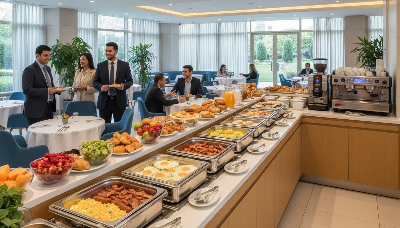 - تنوع آیتمها: یک بوفه صبحانه خوب باید شامل انواع غذاهای گرم و سرد، شیرینیجات، میوهها، لبنیات، نوشیدنیها (مانند چای و قهوه) و نانهای تازه باشد تا پاسخگوی سلیقههای مختلف باشد.