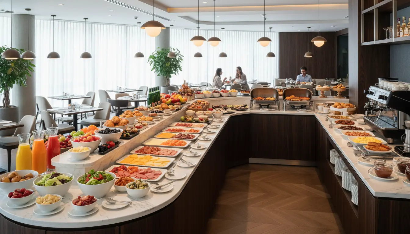 - تنوع بالای آیتمها: بوفه باید شامل طیف وسیعی از غذاهای گرم و سرد، شیرینیجات، میوهها، و نوشیدنیها باشد.