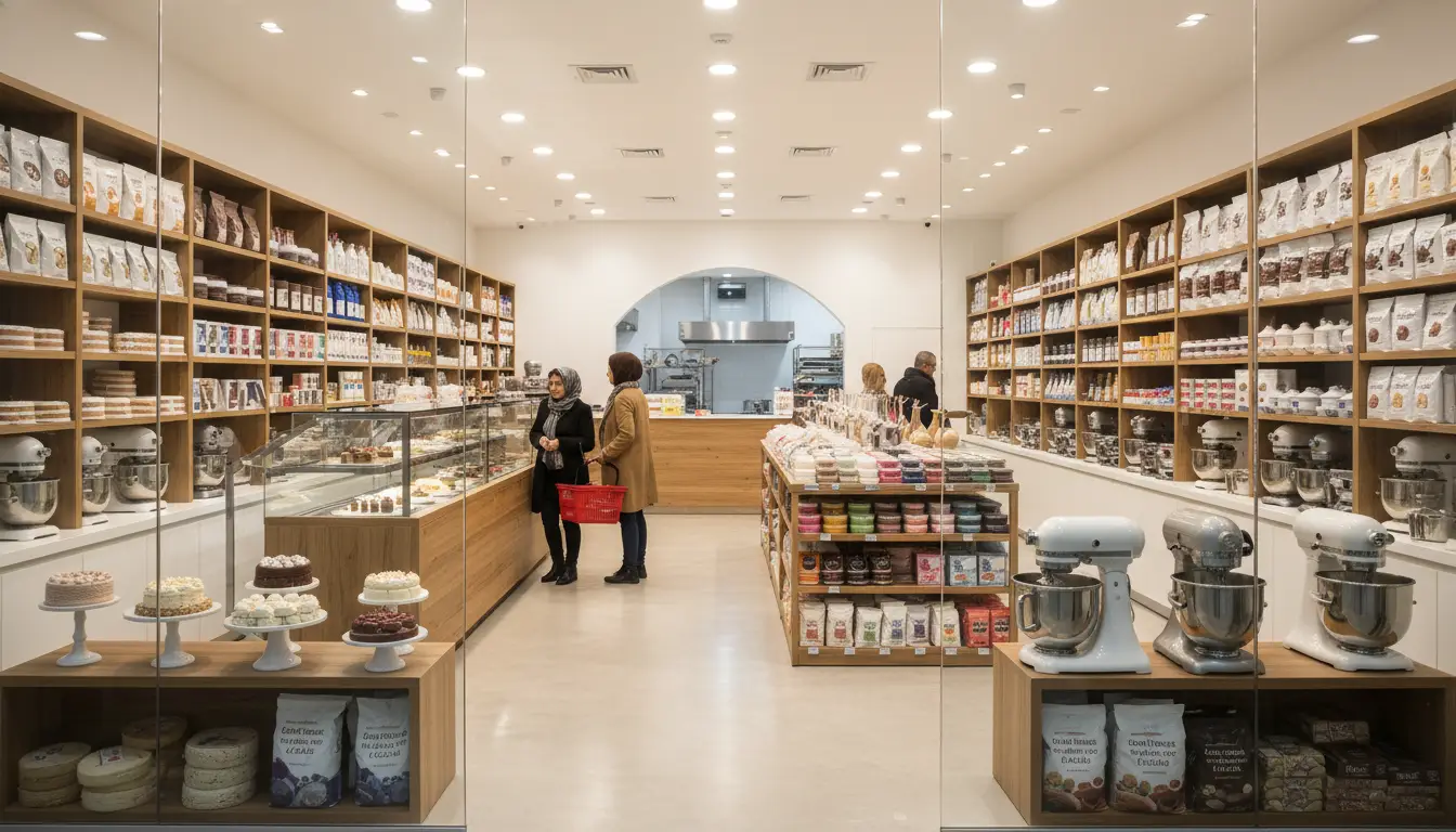 • تنوع محصول: دسترسی به طیف وسیعی از مواد اولیه (آرد، شکر، شکلات، رنگ‌های خوراکی، اسانس‌ها)، ابزارها (قالب، همزن، ماسوره) و لوازم تزئینی.