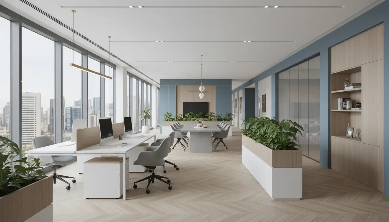 • نورپردازی مناسب: ترکیب نور طبیعی و مصنوعی به شکلی که خستگی چشم را کاهش دهد و انرژی محیط را افزایش دهد.