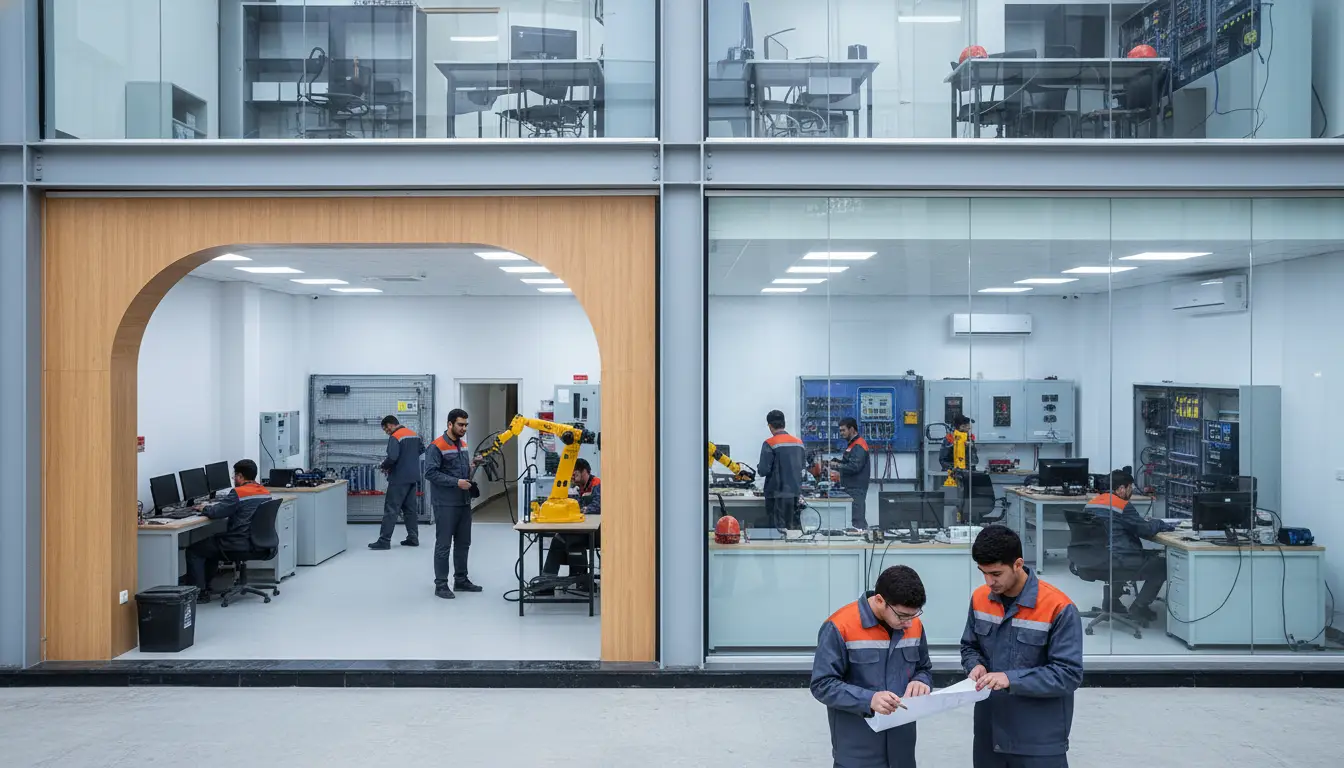 - کارگاههای مجهز: وجود تجهیزات و ابزارهای بهروز و کافی برای آموزش عملی بسیار حیاتی است.